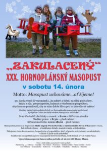 Zveme všechny místní i přespolní na tradiční Masopust a večerní Masopustní veselici v Horní Plané. Letos dokonce místní akce slaví 30. let od svého založení! K tanci a poslechu hraje skvělá českokrumlovská kapela HRAJETO.