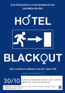 Srdečně zveme dospělé diváky na divadelní představení ŠOS Prachatice HOTEL BLACKOUT režiséra Jaromíra Hrušky. Komedie o mužích a ženách na sítích i bez sítě…